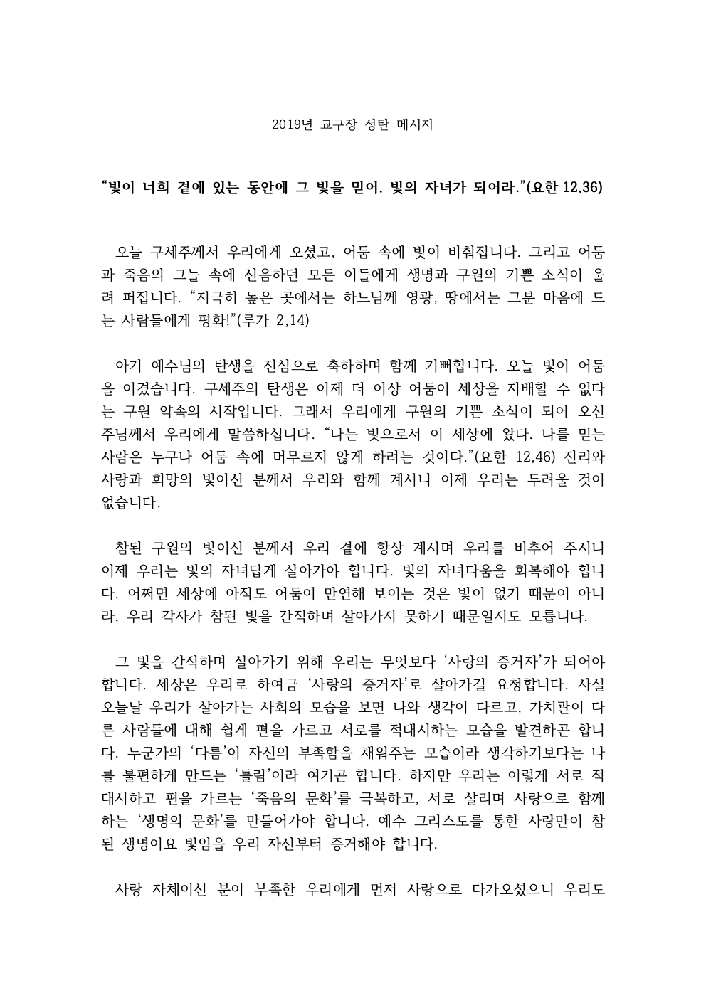 2019년 천주교 춘천교구 성탄메시지.hwp