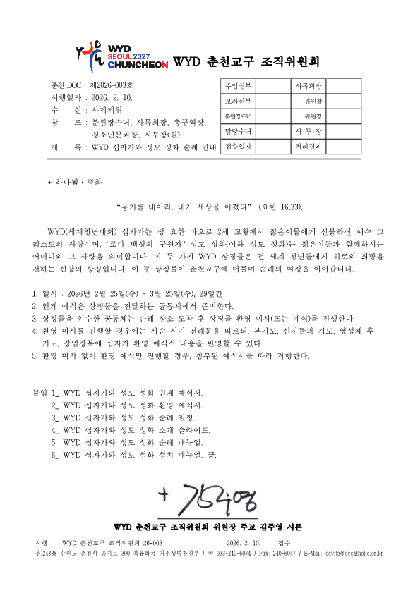 춘천 DOC 26-003호 WYD 십자가와 성모 성화 순례 안내