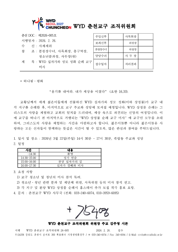 춘천 DOC 26-005호 춘천교구 WYD 십자가와 성모 성화 순례 교구 미사