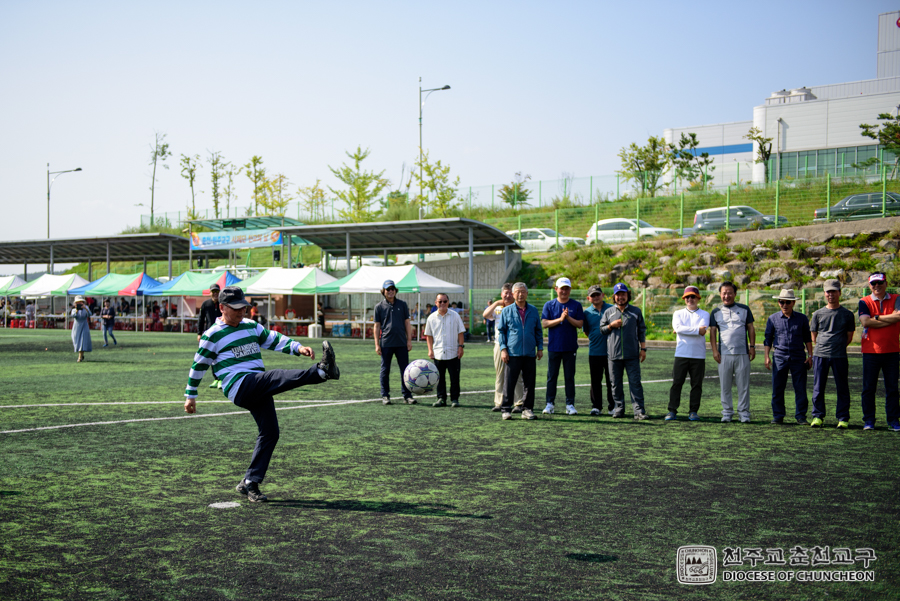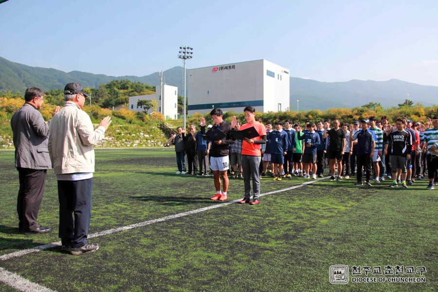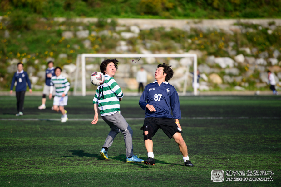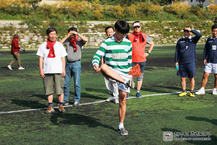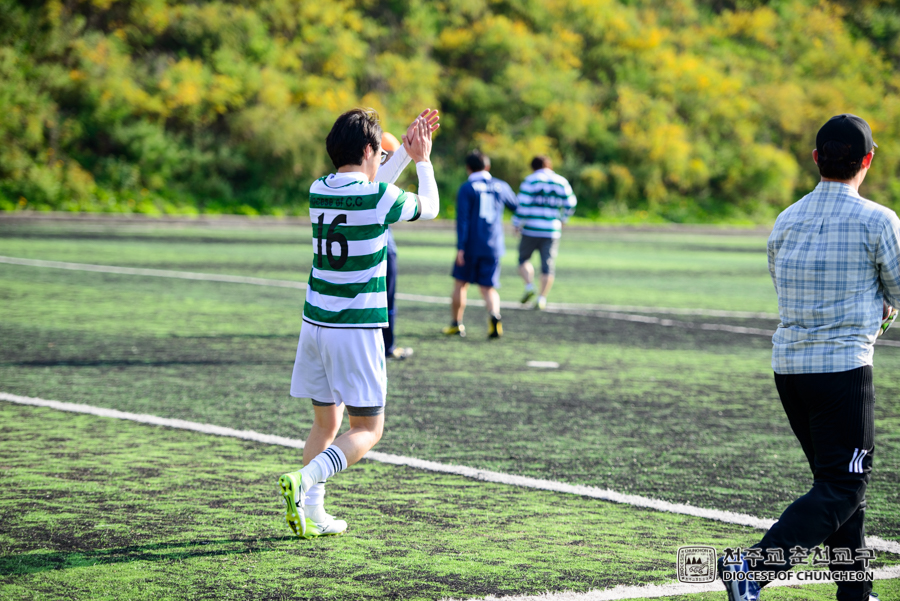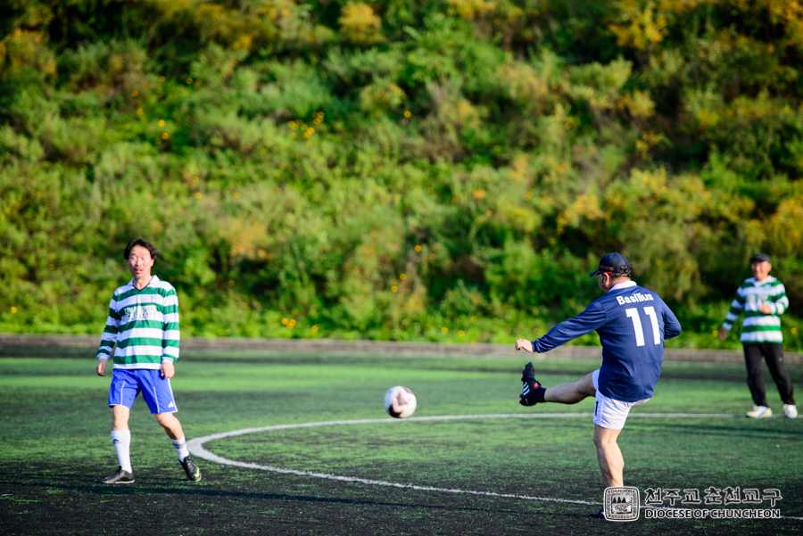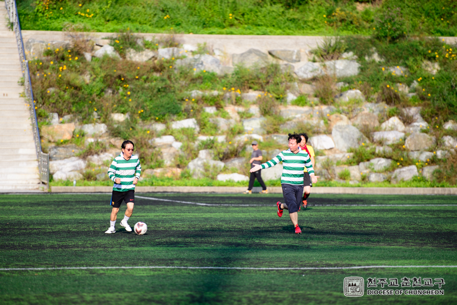 마지막을 장식한 축구는 전반전은 서품 15년차 이하, 후반전 서품 16년차 이상으로 나뉘어 경기가 진행되었는데 프로급 선수 못지 않은 축구 실력을 선보인 춘천교구 선수 사제들은 연신 골을 터트렸으며, 골키퍼의 철벽 방어로 승리하였다.