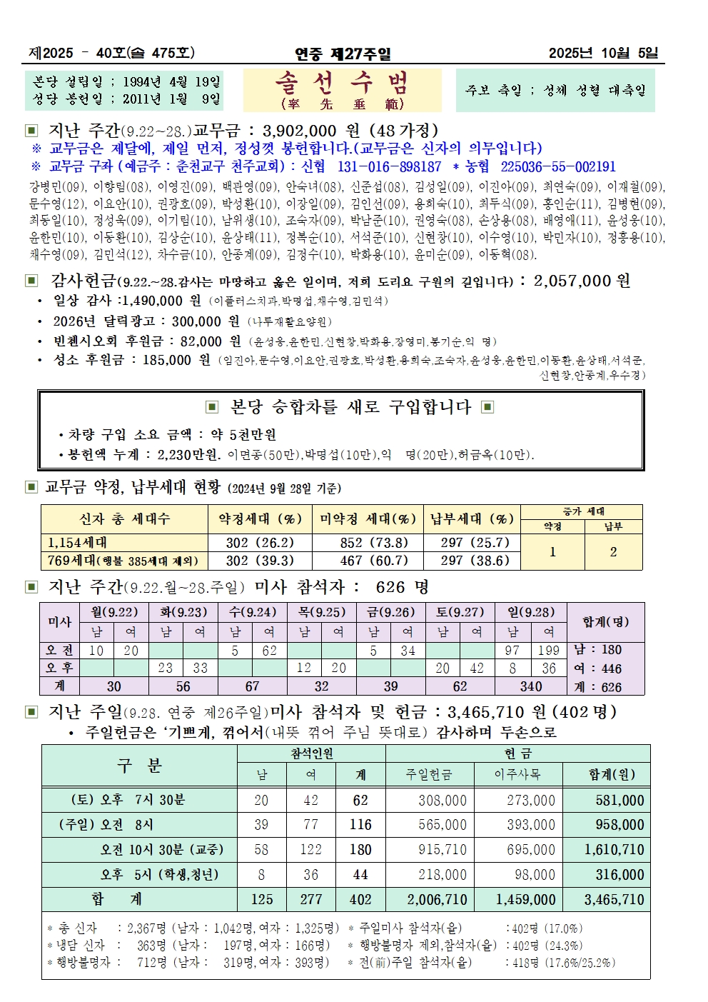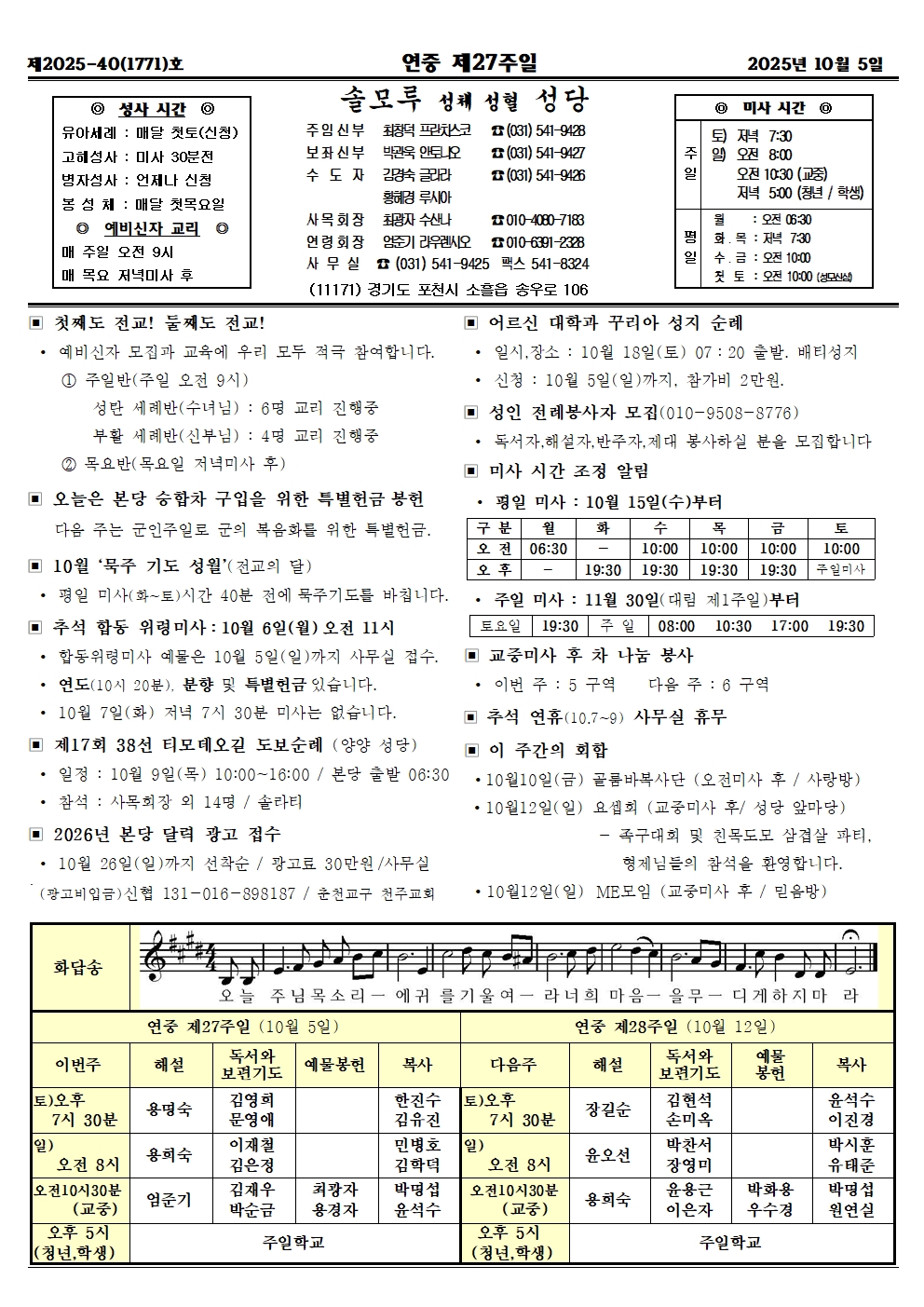 솔모루 - 2025년 10월 5일. 연중 제27주일