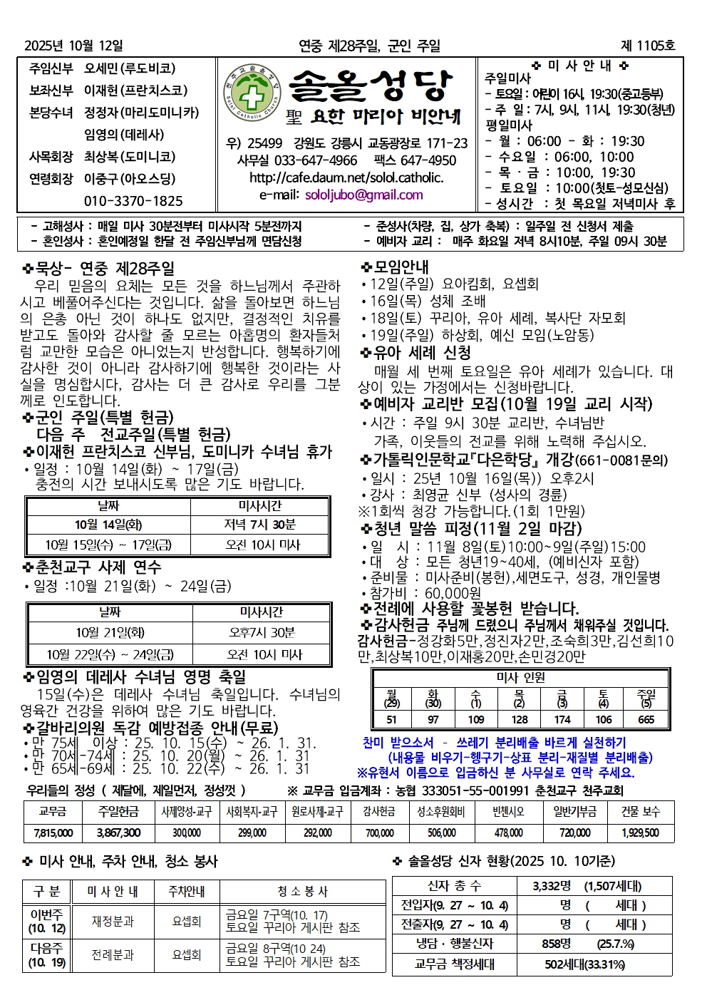 솔올 - 2025년 10월 12일 연중 제28주일, 군인 주일
