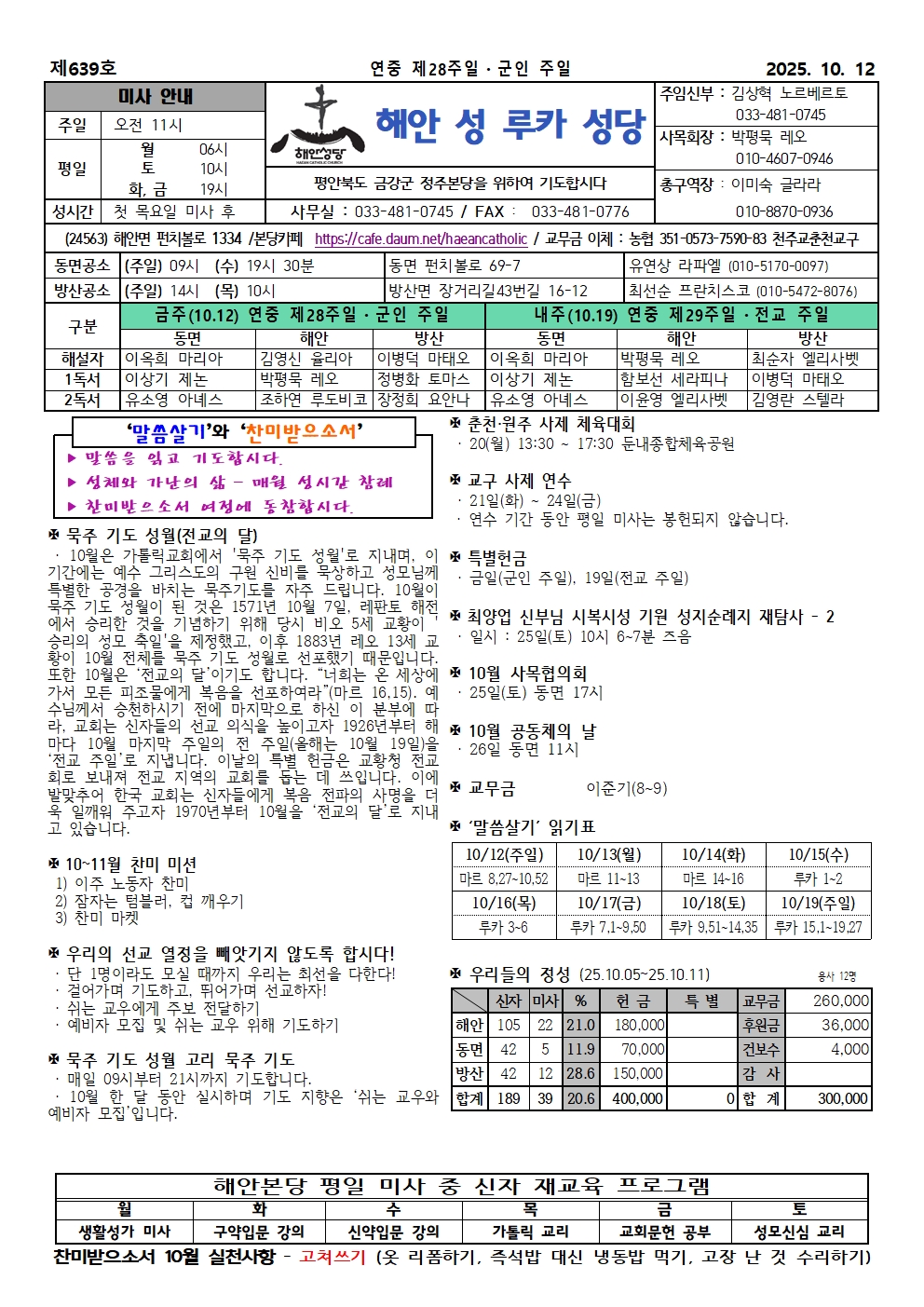 해안 - 2025년 10월 12일 연중 제 28주일 + 군인주일