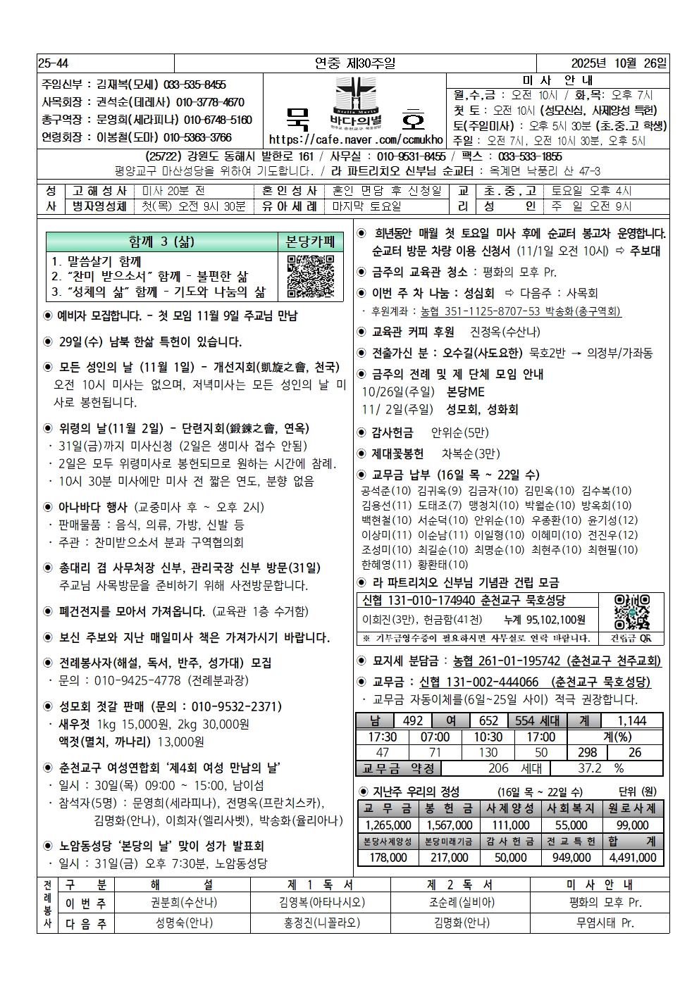 묵호 - 2025년 10월 26일, 연중 제30주일