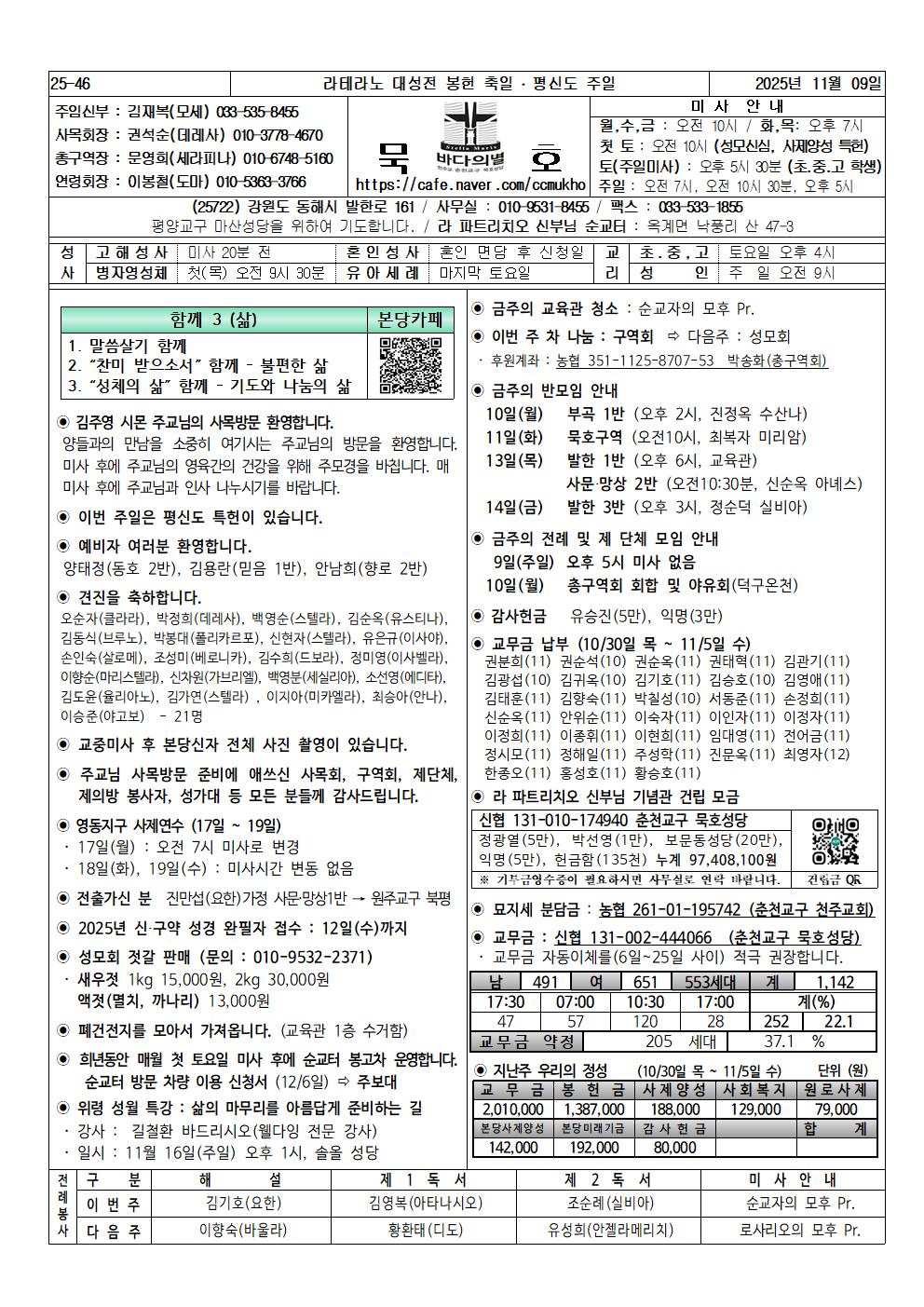 묵호 - 2025년 11월 9일, 라테라노 대성전 봉헌 축일(평신도 주일)