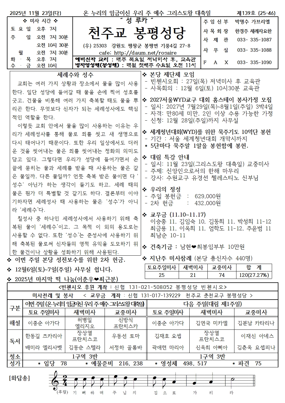 봉평-2025년11월23일 온 누리의 임금이신 우리 주 예수 그리스도왕 대축일