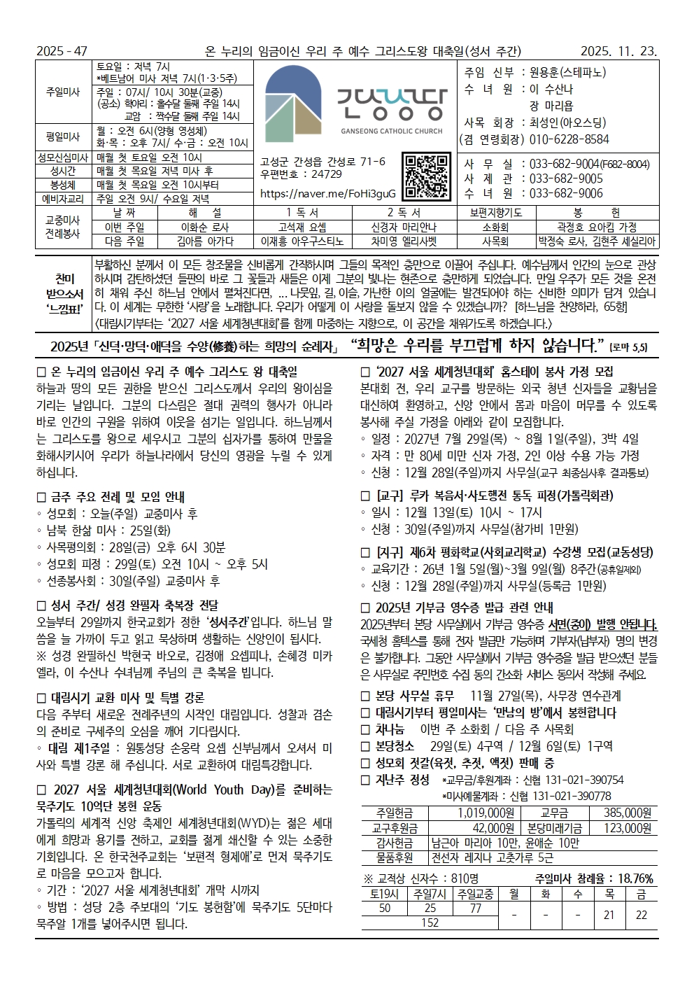 간성 - 2025년 11월 23일 온 누리의 임금이신 우리 주 예수 그리스도왕 대축일(성서 주간)