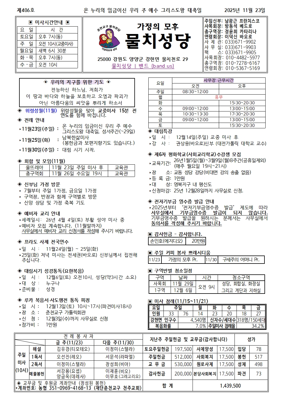 물치-2025년 11월 23일 온 누리의 임금이신 우리 주 예수 그리스도왕 대축일