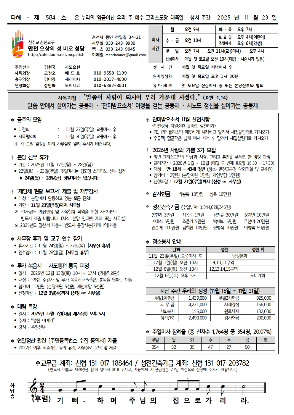 만천 - 2025년 11월 23일 온 누리의 임금이신 우리 주 예수 그리스도왕 대축일 · 성서 주간