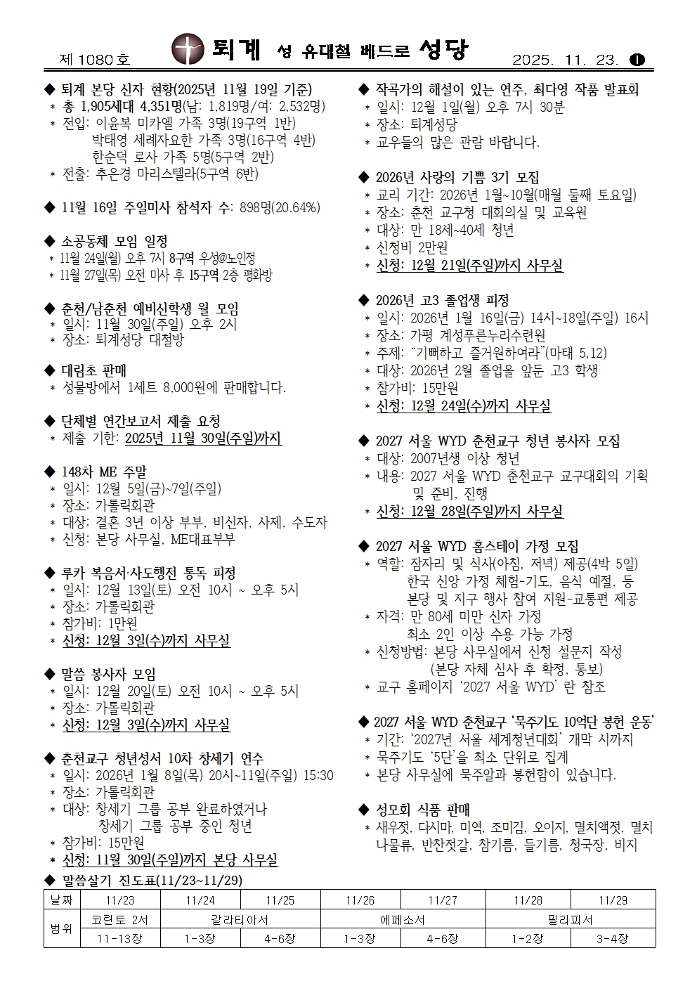 퇴계 - 2025년 11월 23일 온 누리의 임금이신 우리 주 예수 그리스도왕 대축(성서 주간)