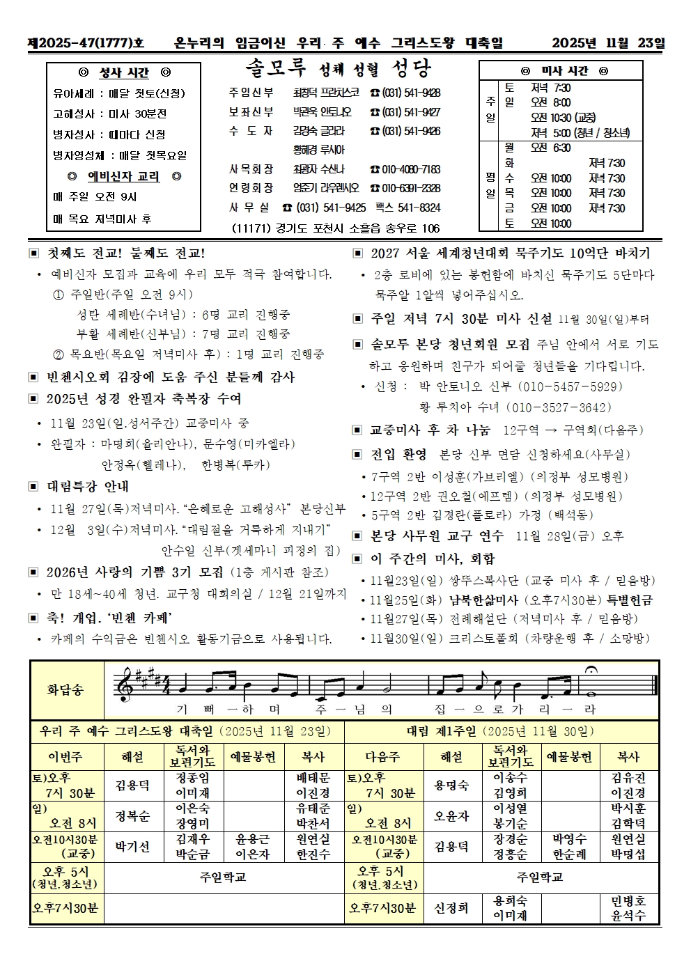 솔모루 - 2025년 11월 23일. 온 누리의 임금이신 우리 주 예수 그리스도왕 대축일