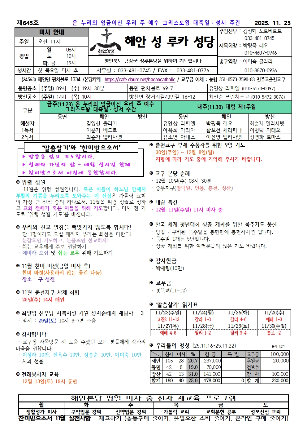해안 - 2025년 11월 23일 온 누리의 임금이신 우리 주 예수 그리스도왕 대축일(성서주간)