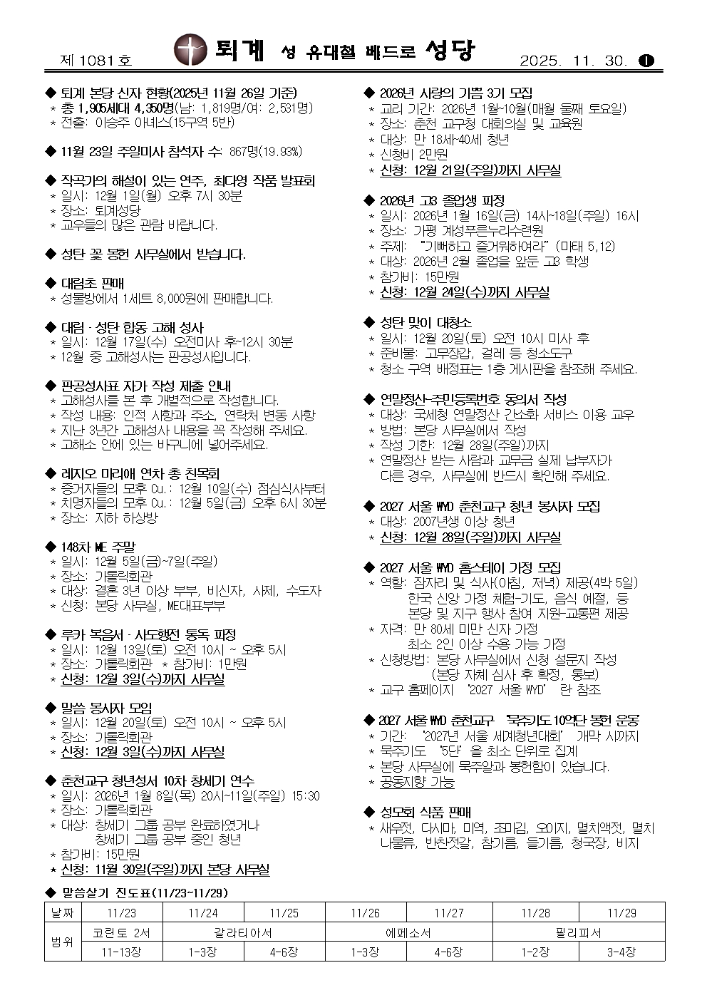 퇴계 - 2025년 11월 30일 대림 제1주일