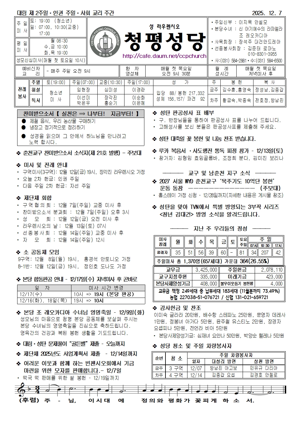청평 - 2025년 12월 7일 대림 제 2주일ㆍ인권 주일ㆍ사회 교리 주간