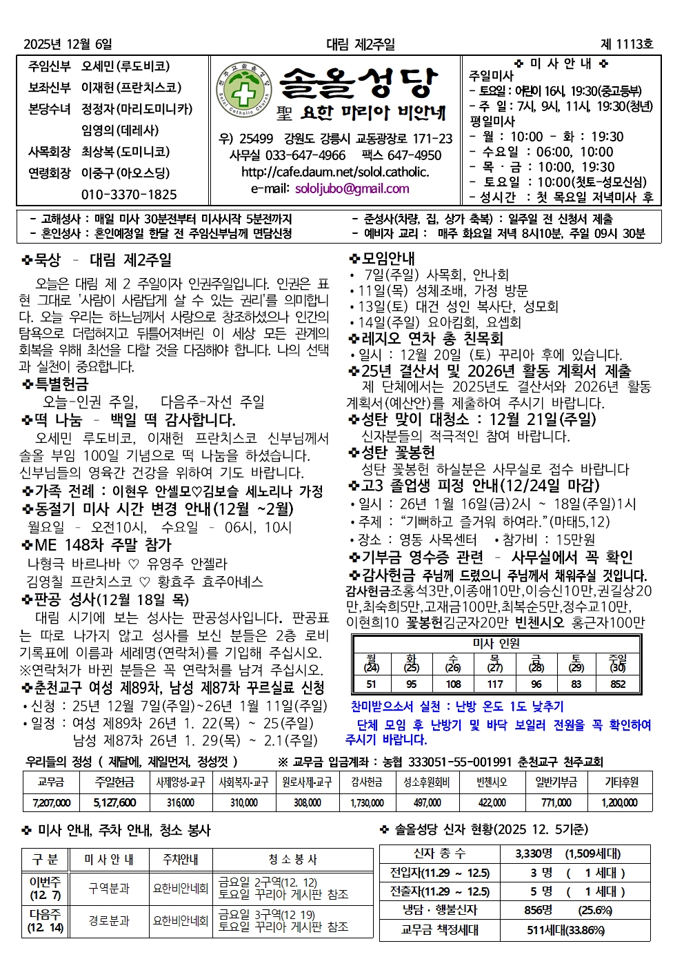 솔올 - 2025년 12월 7일 대림 제2주일 인권 주일