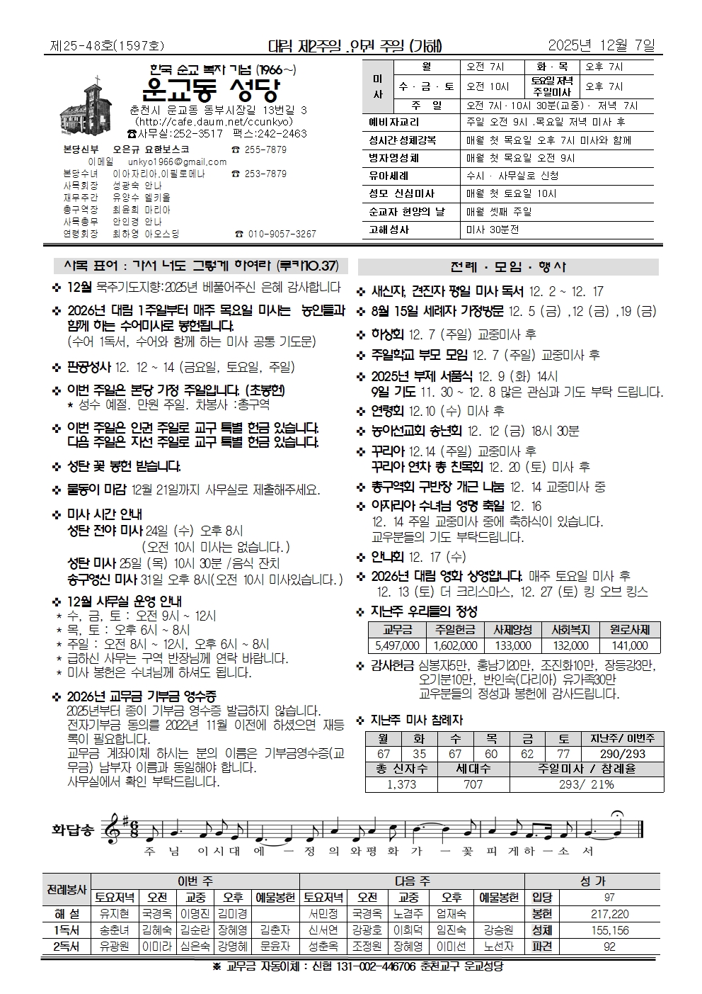 운교동 2025년 12월 7일 대림 제 2주일 인권주일