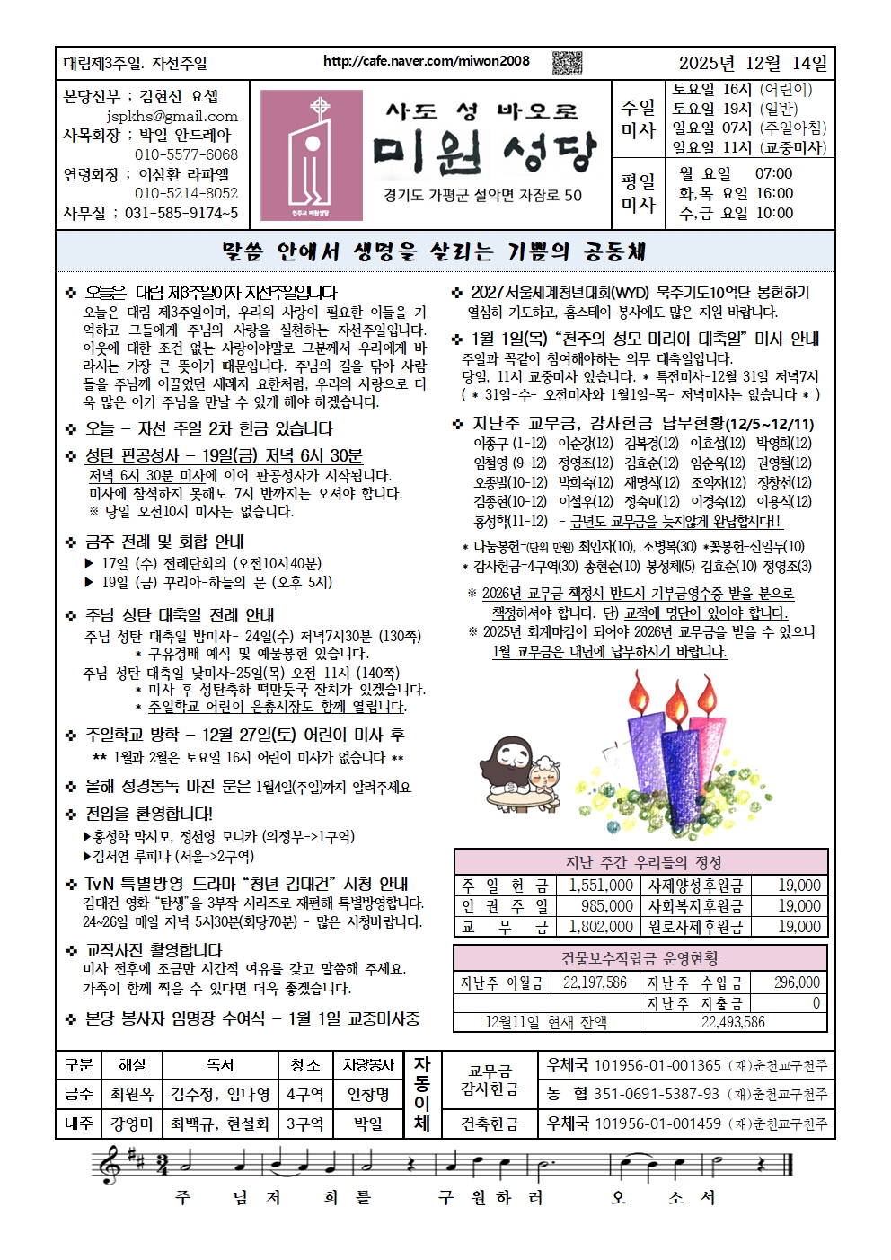 미원 - 2025년 12월14일 대림 제3주일. 자선 주일