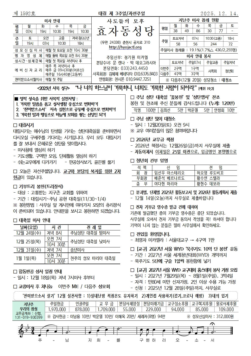 효자동 - 2025년 12월 14일 대림 제3주일(자선주일)