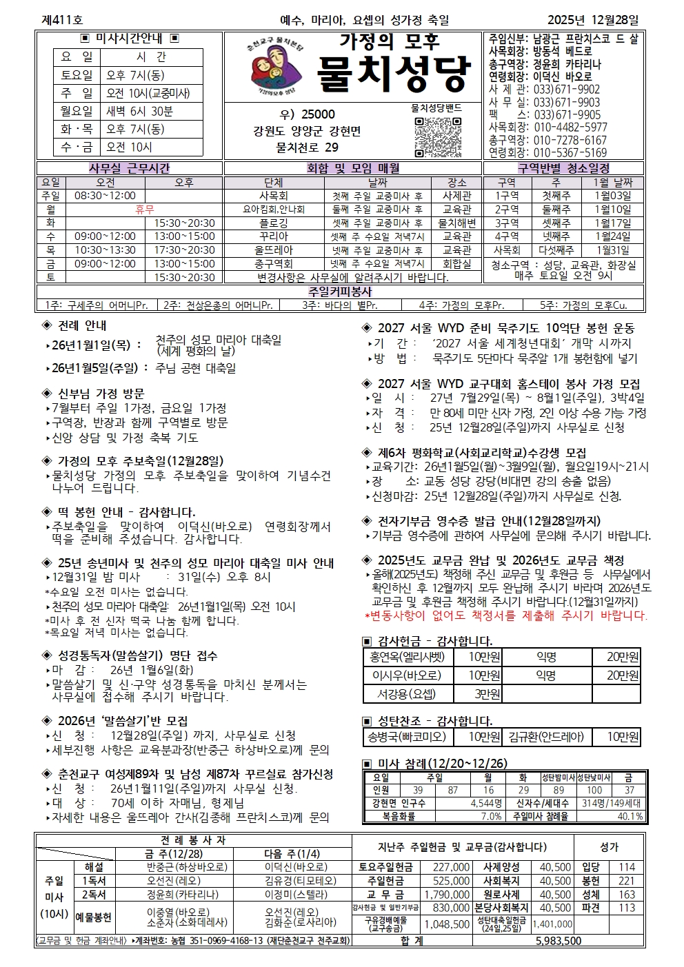 물치-2025년 12월 28일 예수, 마리아, 요셉의 성가정 축일