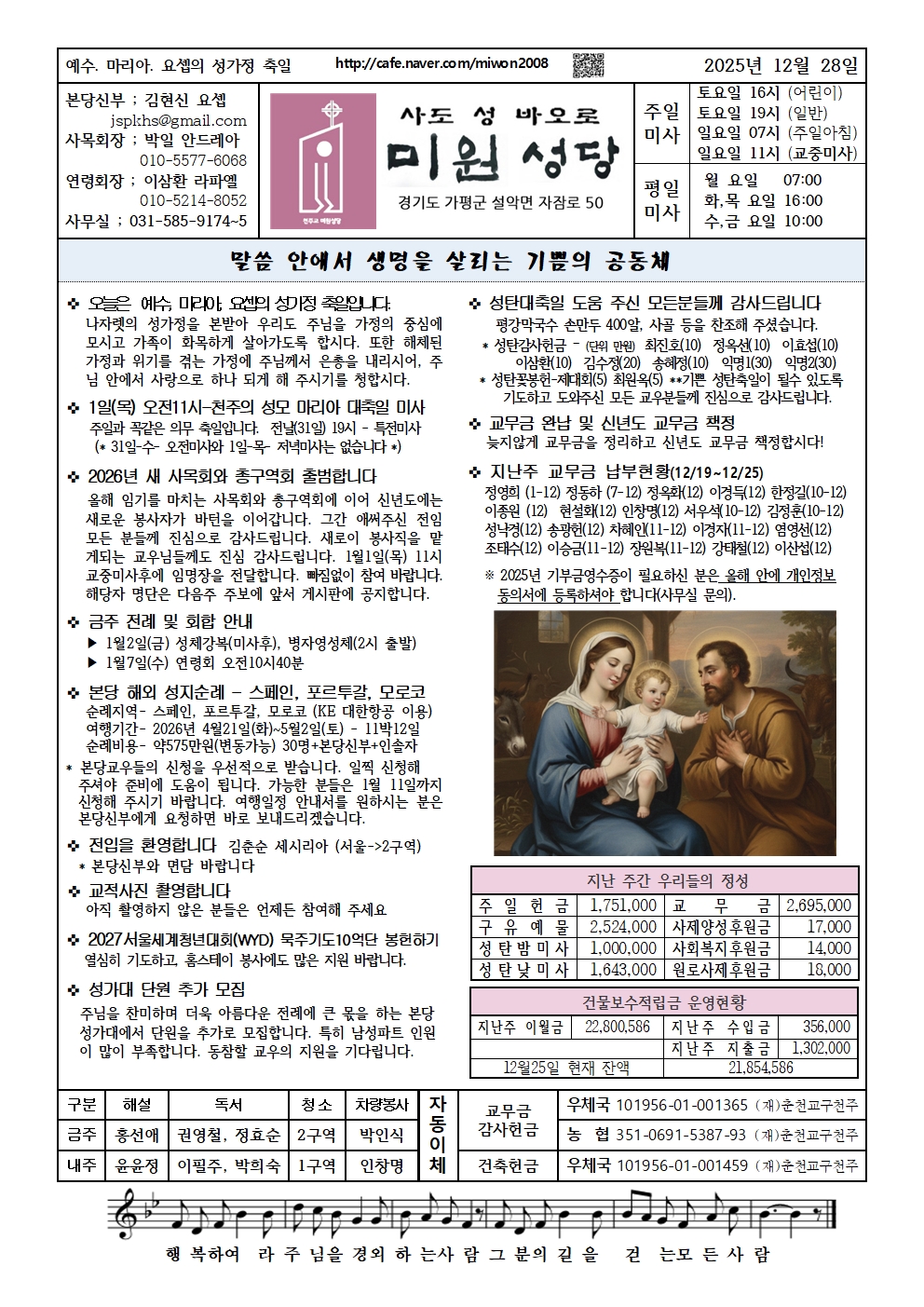 미원-2025년 12월28일 예수, 마리아, 요셉의 성가정 축일 . 가정 성화 주간
