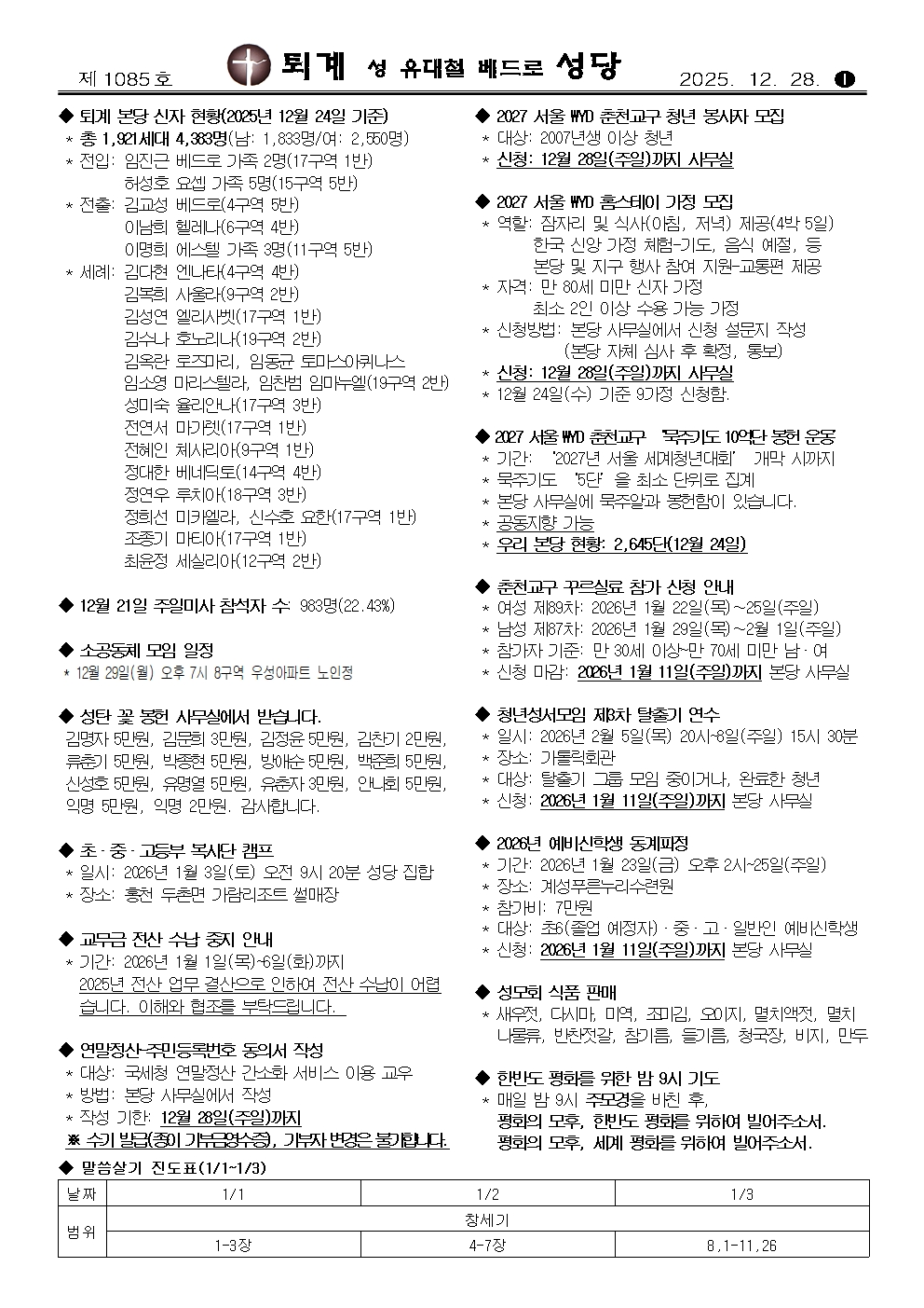 퇴계 - 2025년 12월 28일 예수, 마리아, 요셉의 성가정 축일(가정 성화 주간)