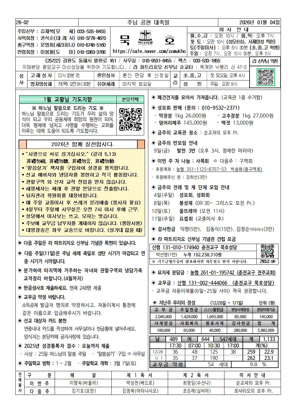 묵호 - 2026년 1월 4일, 주님 공현 대축일
