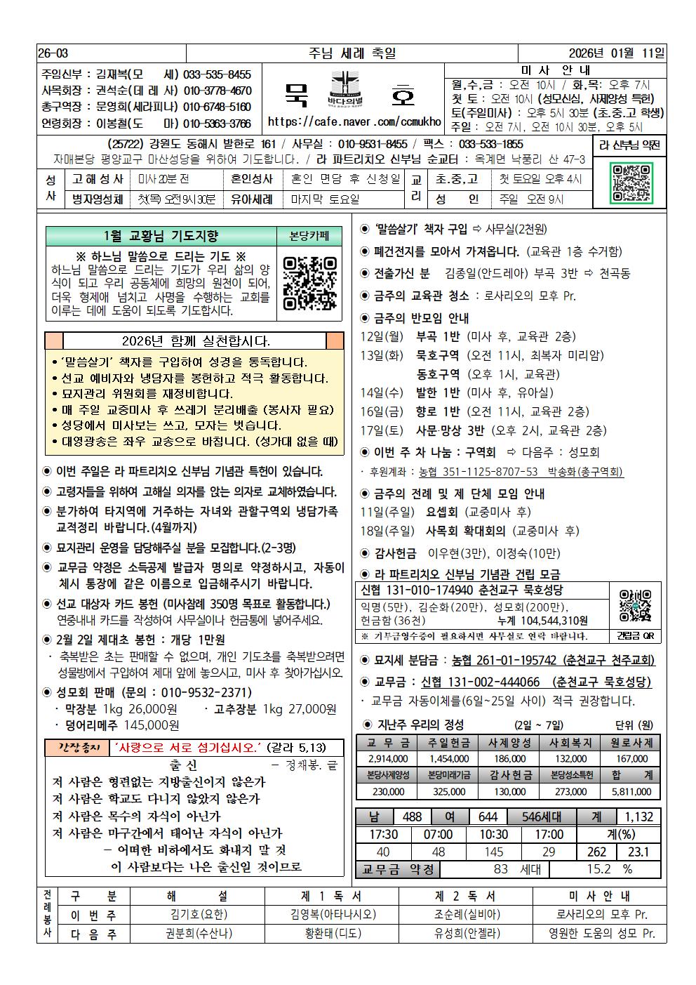 묵호 - 2026년 1월 11일, 주님 세례 축일