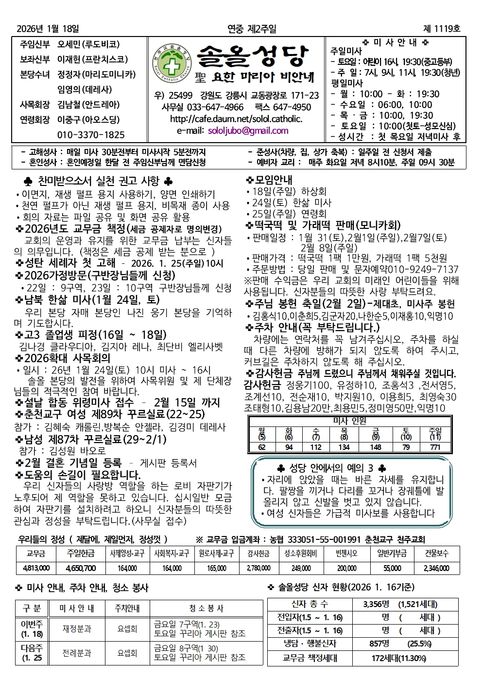 솔올 - 2026년 1월 18일 연중 제2주일 (일치 주간)