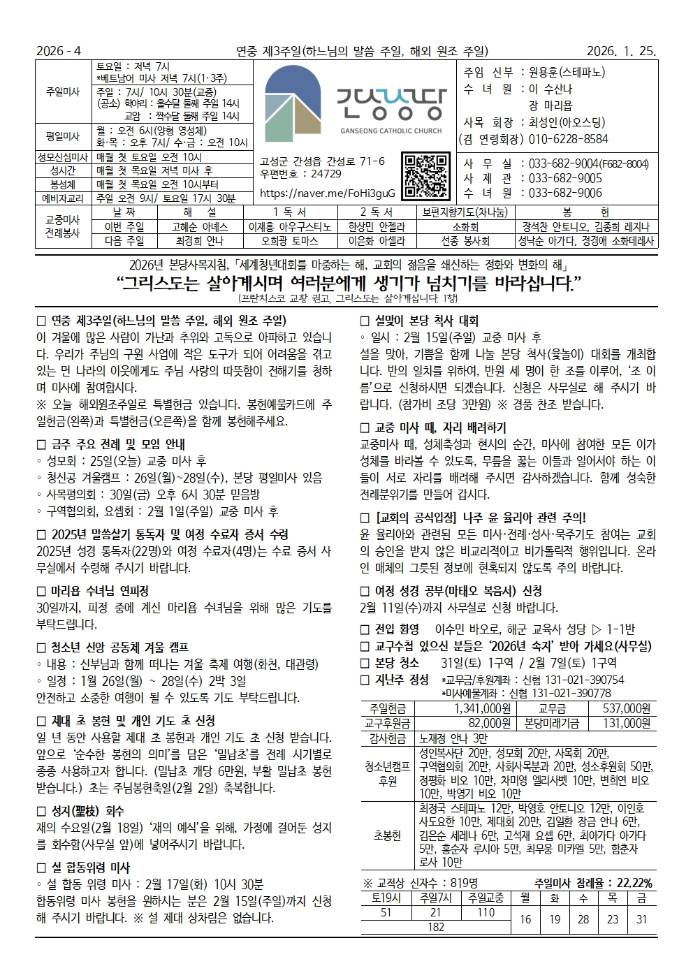 간성 - 2026년 1월 25일 연중 제3주일(하느님의 말씀 주일/해외 원조 주일)