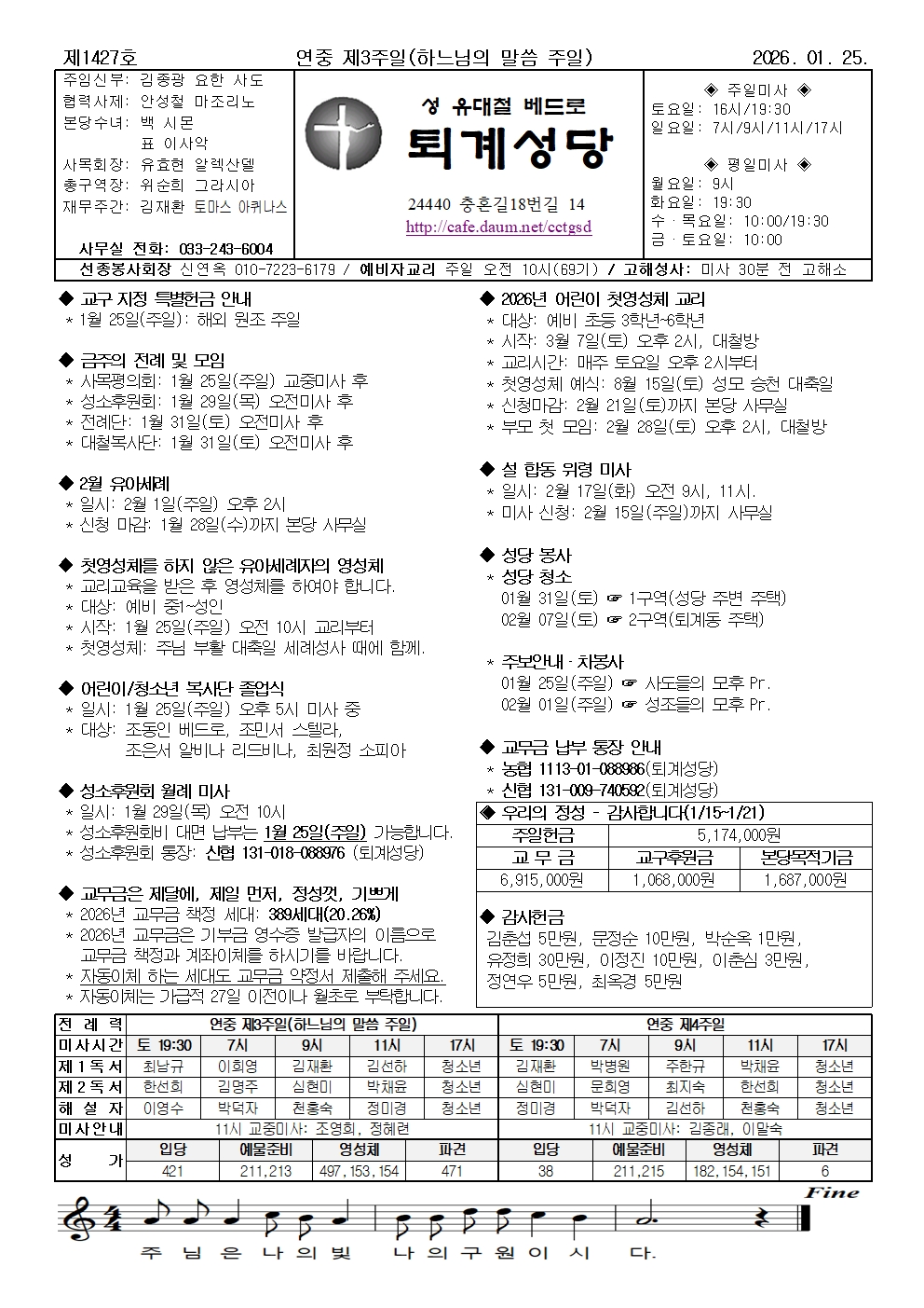 퇴계 - 2026년1월25일 연중 제3주일(해외원조주일, 하느님의말씀주일)