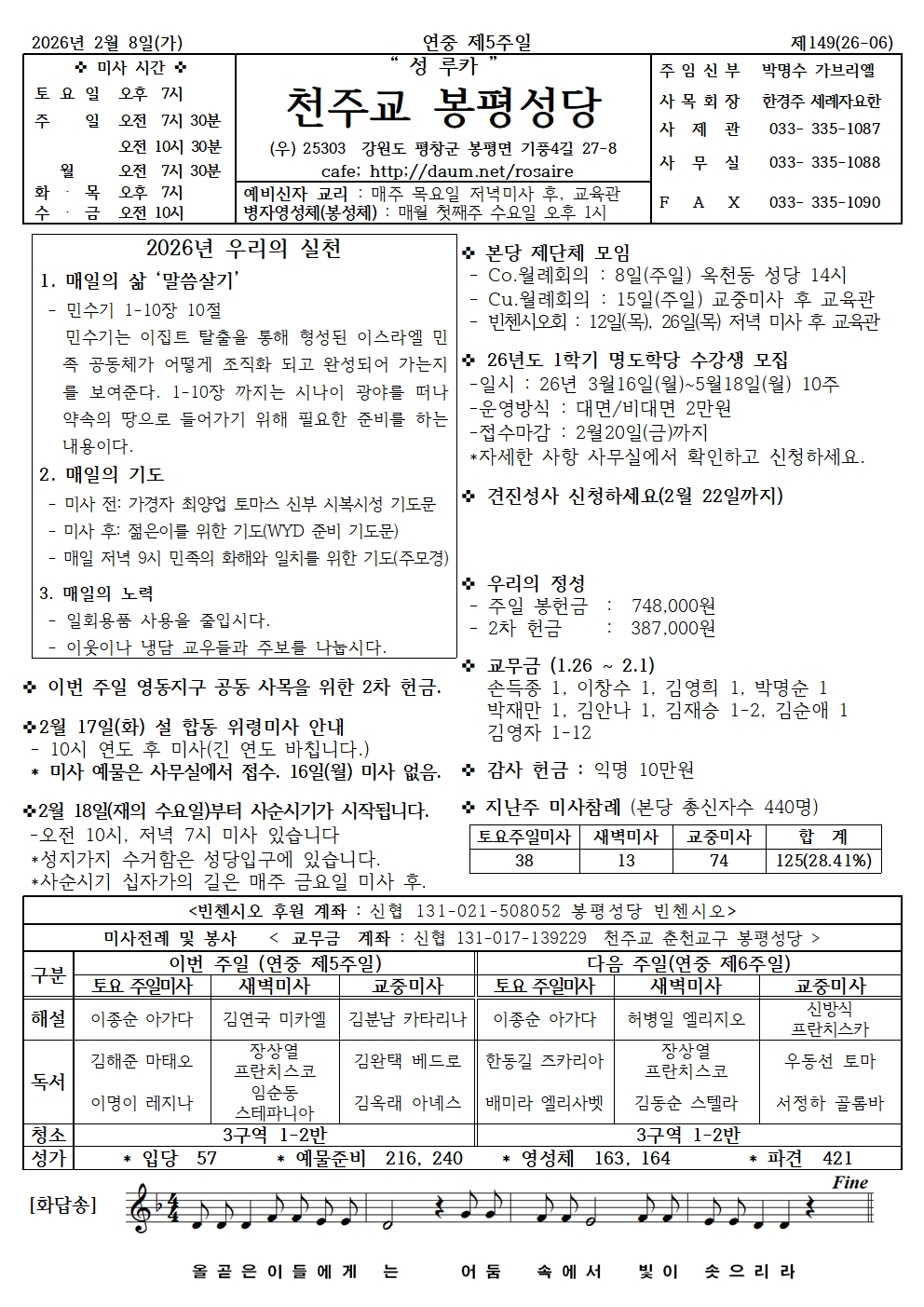 봉평 2026년 2월8일 연중 제5주일