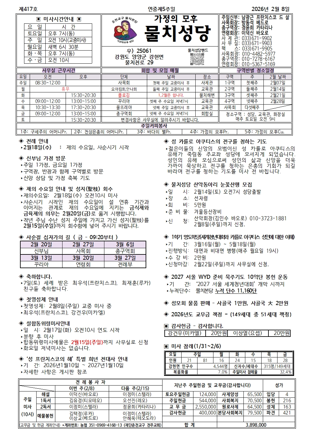 물치-2026년 2월 8일 연중제5주일