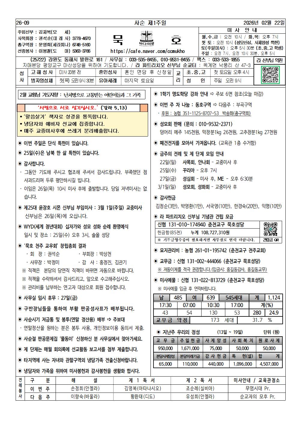 묵호 - 2026년 2월 22일, 사순 제1주일