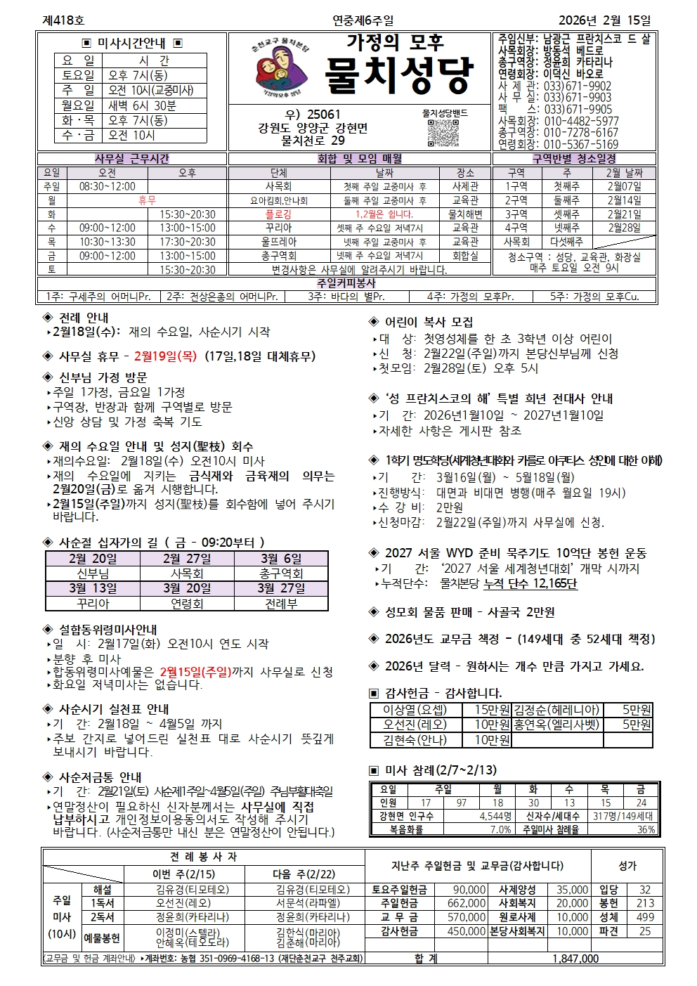 물치-2026년 2월 15일 연중제6주일