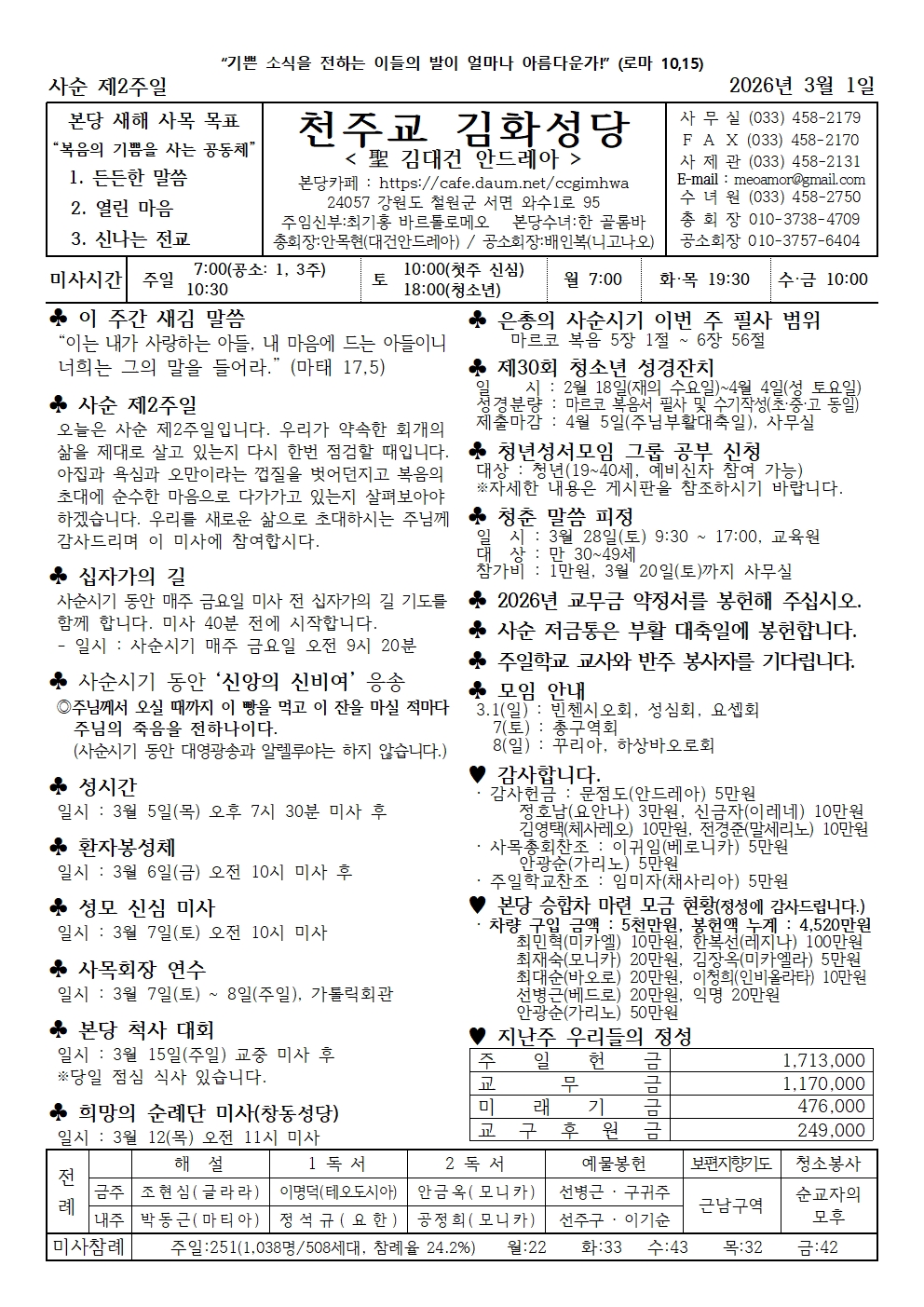 김화 - 2026년 3월 1일 사순 제2주일