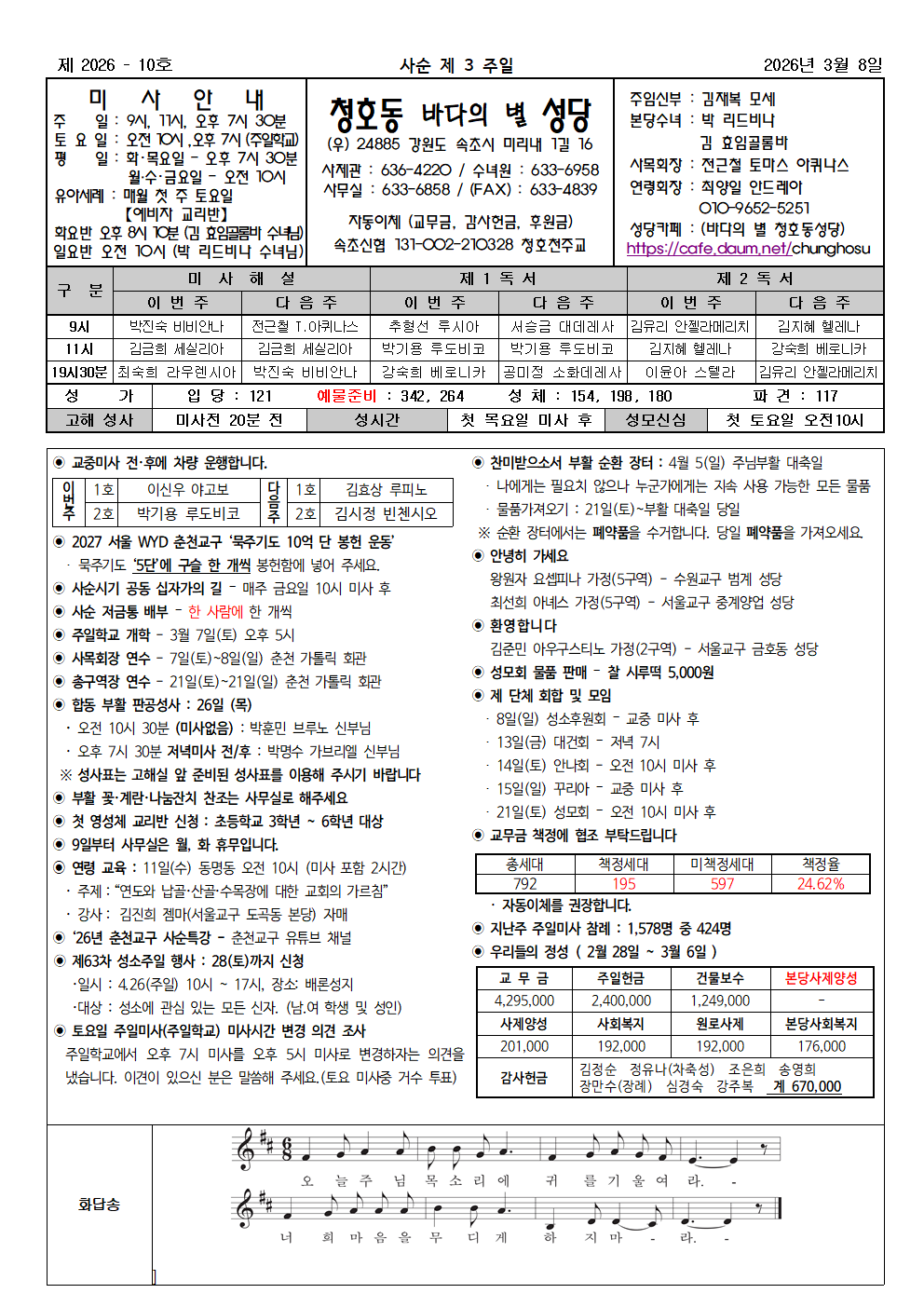 청호동 - 2026년 3월 8일 사순 제 3 주일