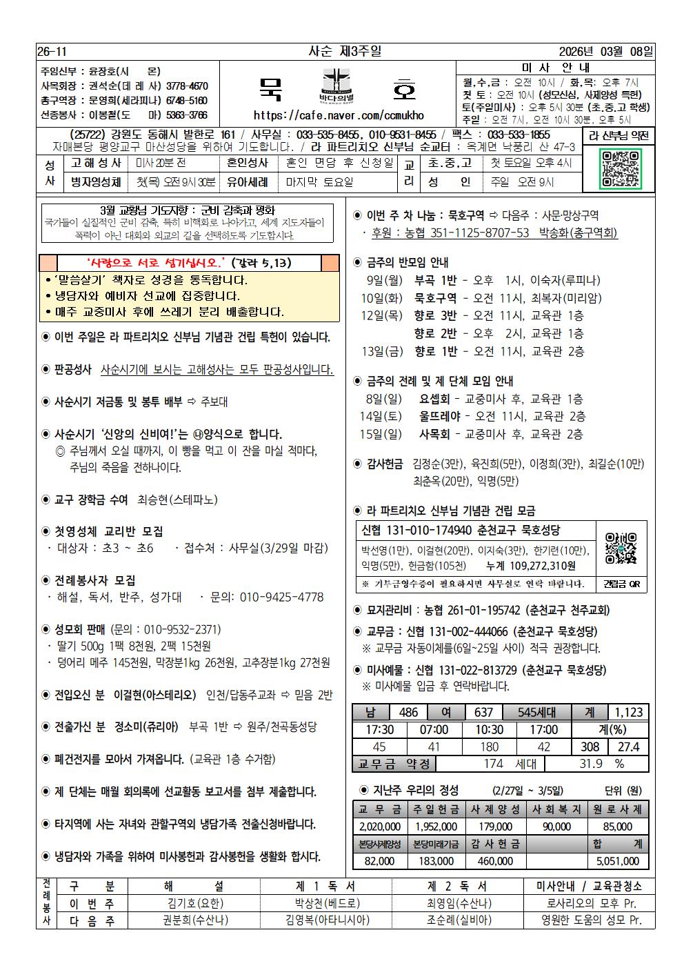 묵호 - 2026년 3월 8일, 사순 제3주일