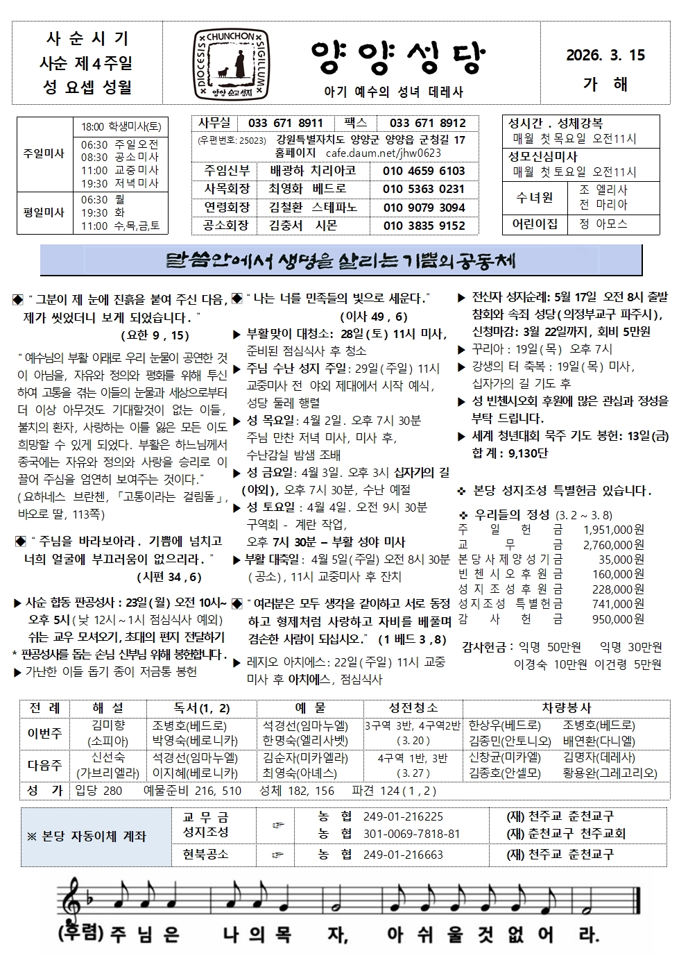 양양 - 2026년 3월 15일, 사순 제4주일