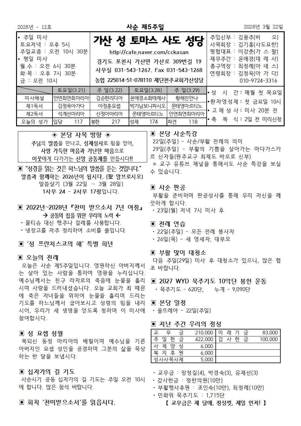 가산 - 2026년 3월 22일, 사순 제5주일
