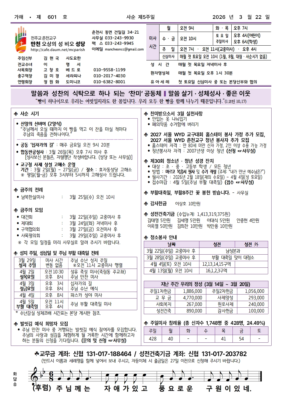 만천 - 2026년 3월 22일 사순 제5주일