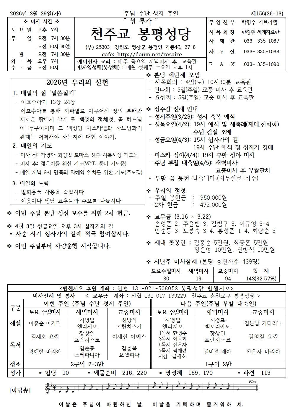 봉평-2026년 3월 29일 주님 수난 성지 주일
