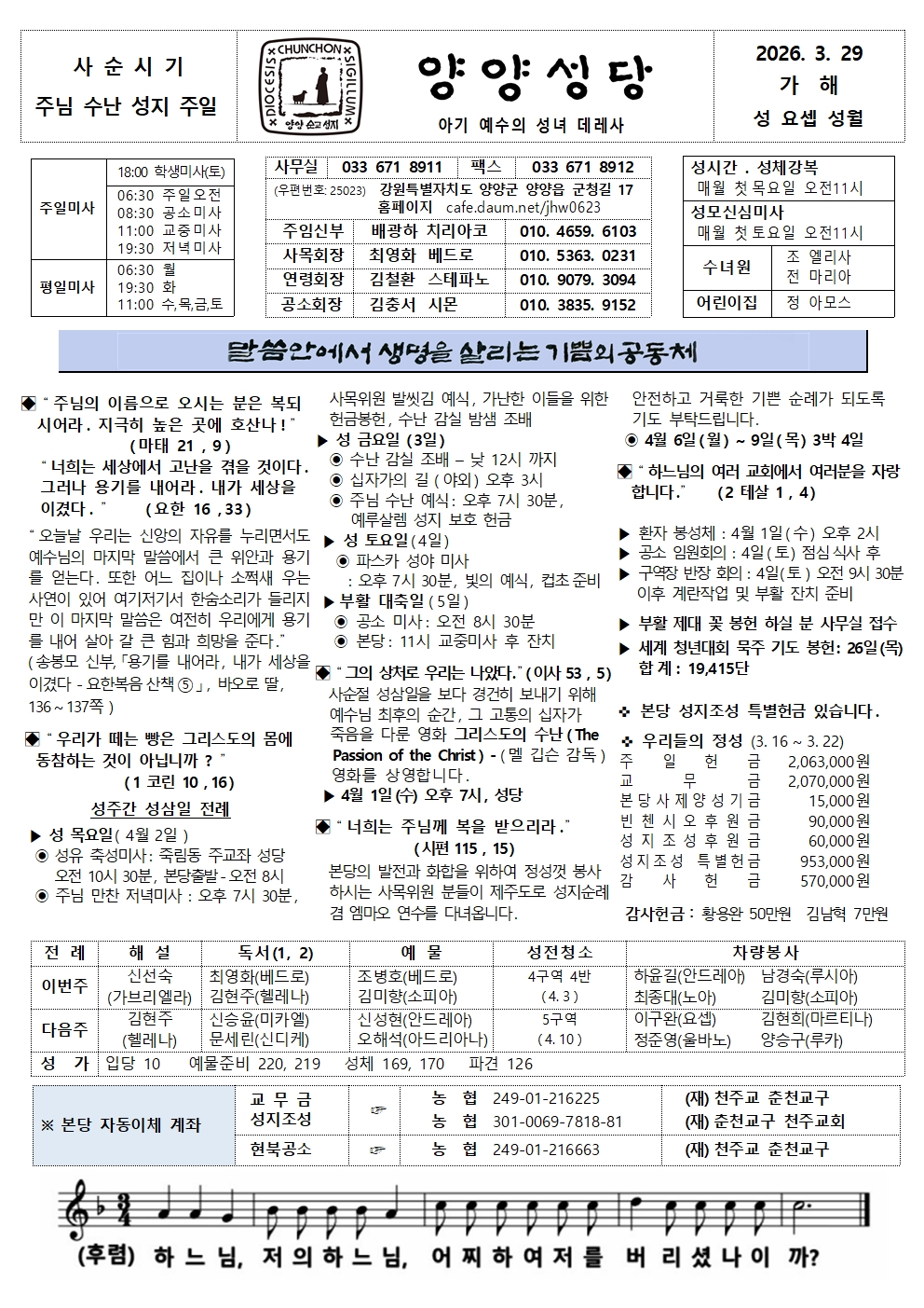 양양 - 2026년 3월 29일 주님 수난 성지 주일