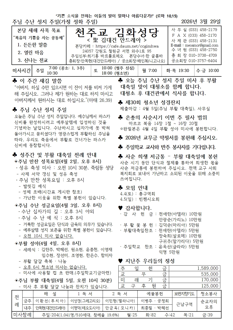 김화 - 2026년 3월 29일 주님 수난 성지 주일(가정 성화 주일)