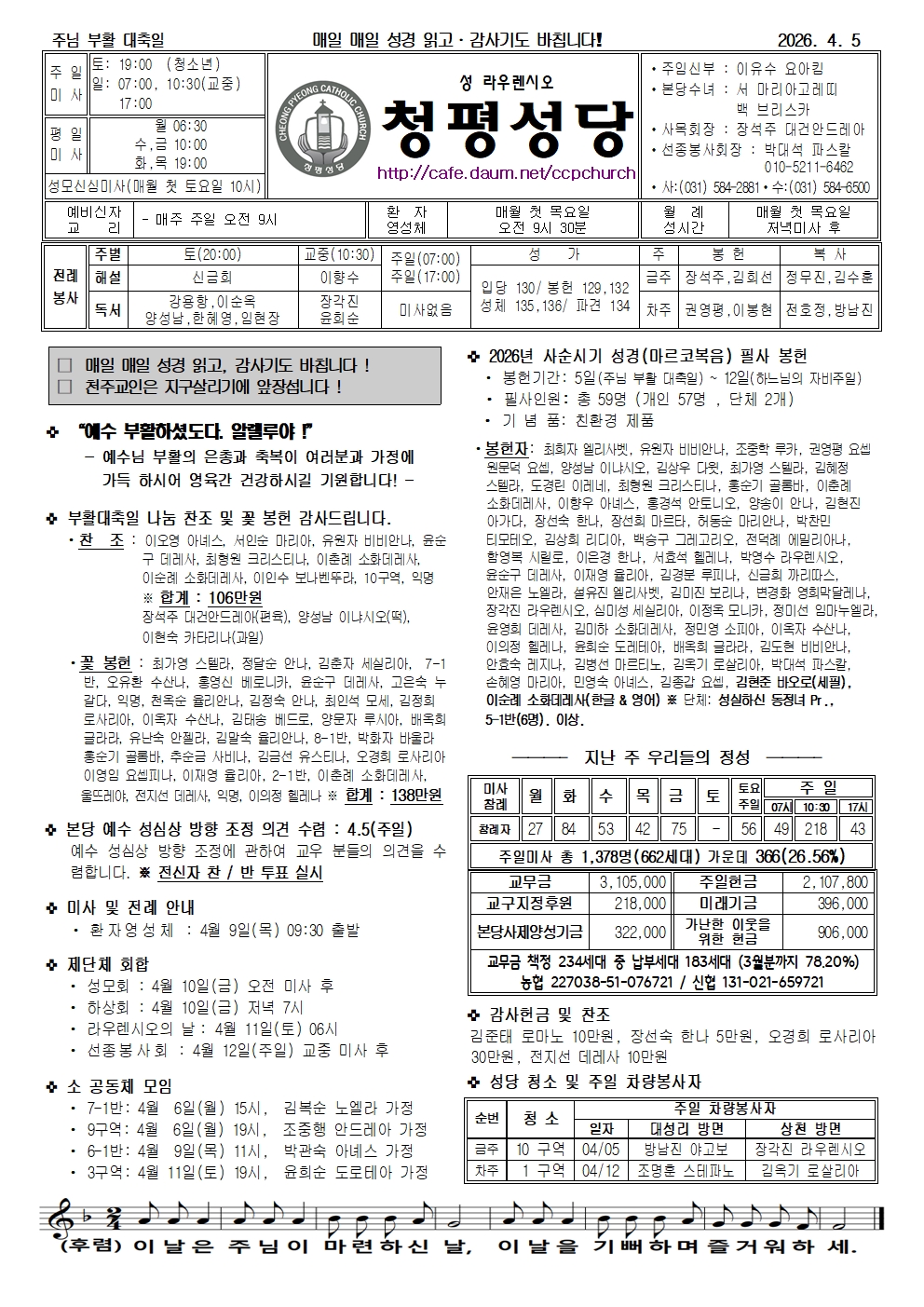 청평 - 2026년 4월 5일 주님 부활 대축일