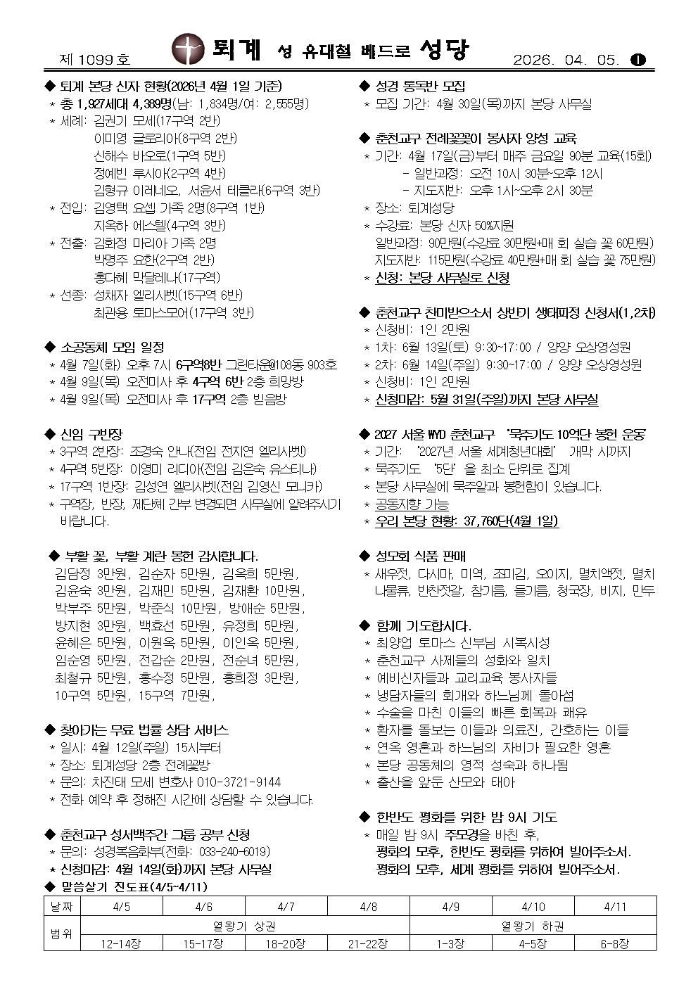 퇴계 - 2026년 4월 5일 주님 부활 대축일