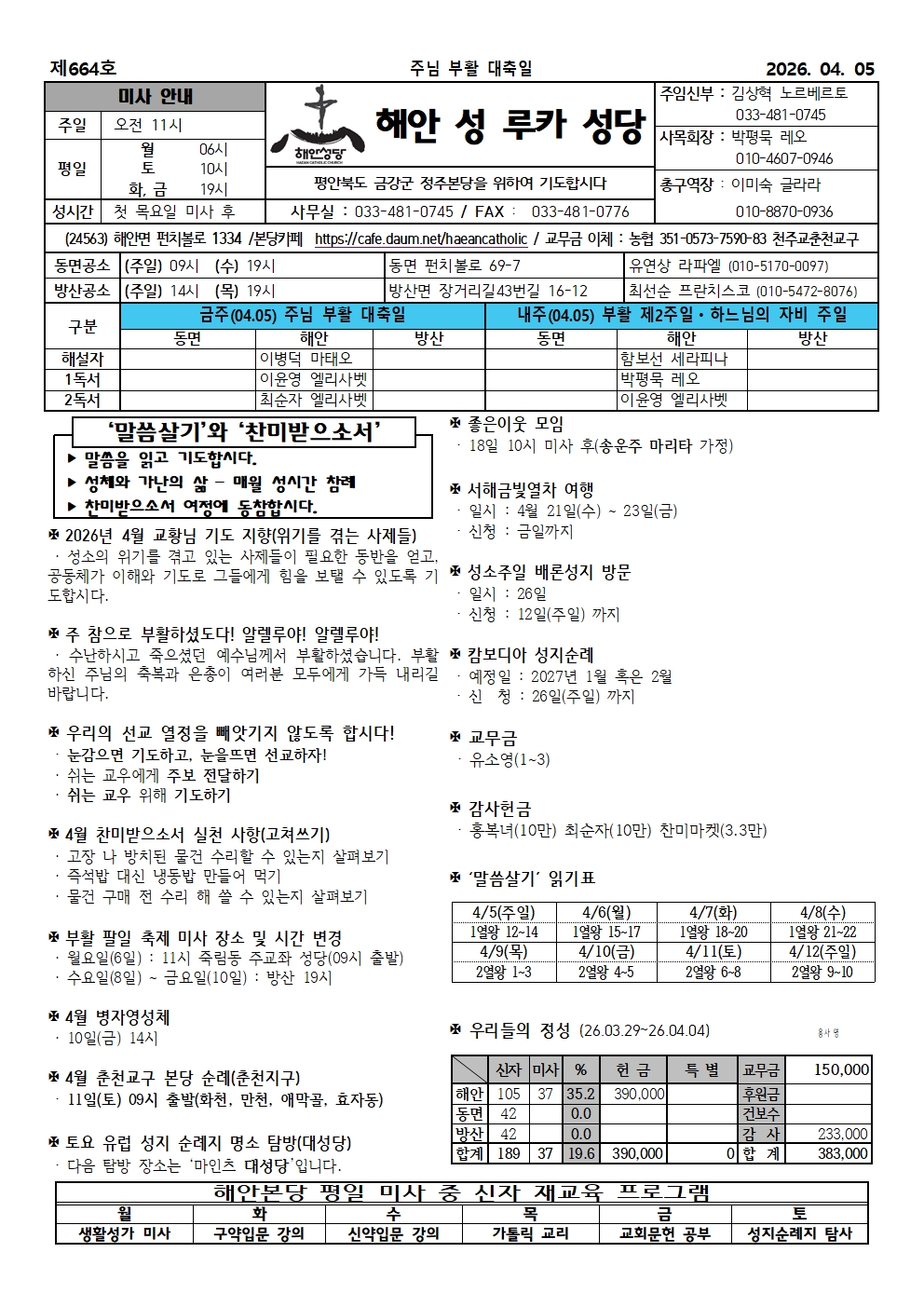 해안 - 2026년 4월 5일 주님 부활 대축일