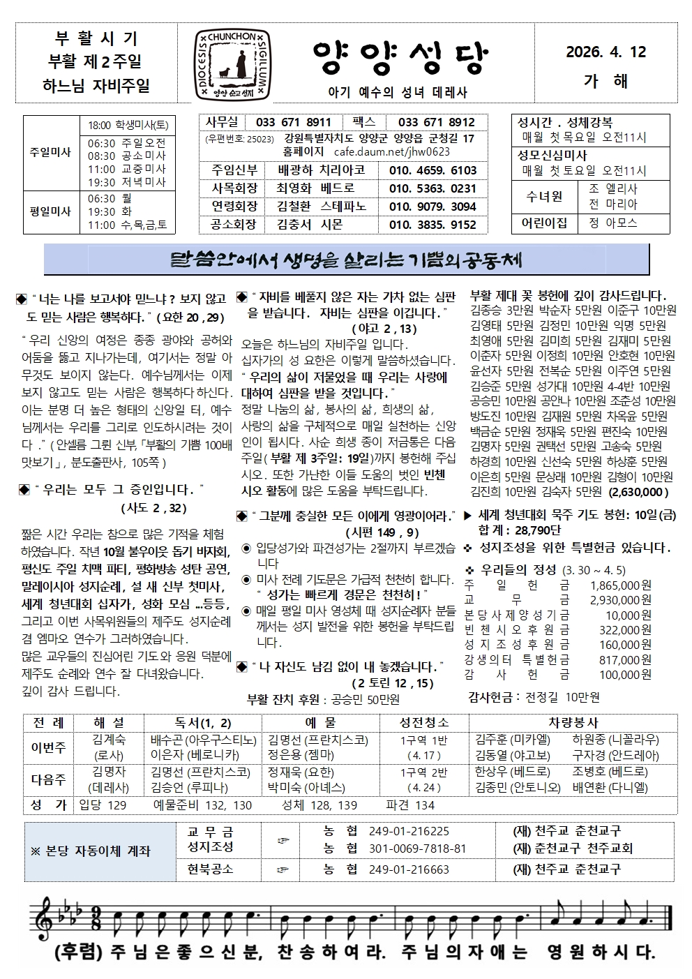 양양 - 2026년 4월 12일 부활 제2주일/ 하느님 자비주일
