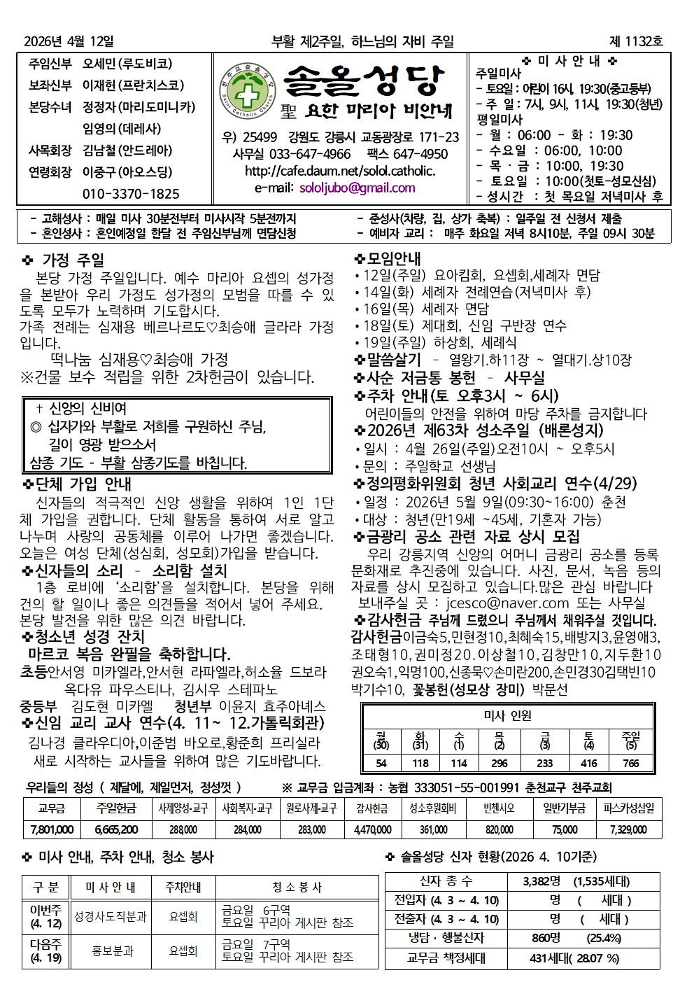 솔올 - 2026년 4월 12일 부활 제2주일, 하느님의 자비 주일