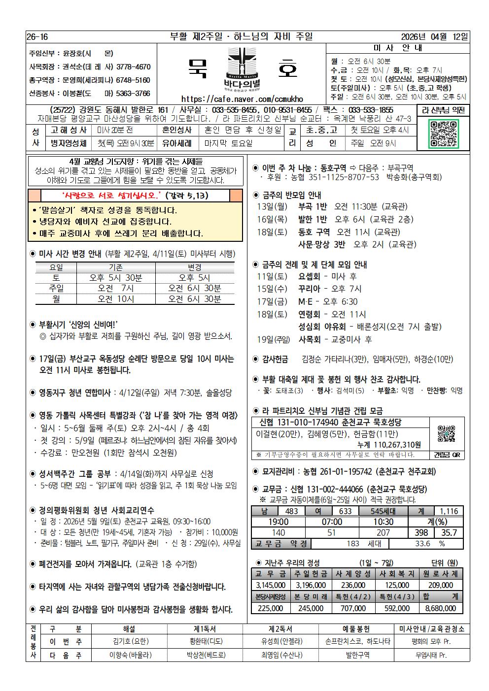묵호 - 2026년 4월 12일, 부활 제2주일(하느님의 자비 주일)