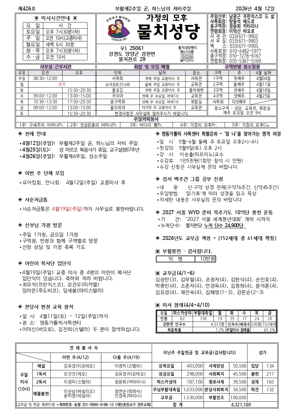 물치-2026년 4월 12일 부활제2주일 곧, 하느님의 자비주일